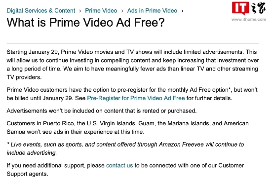 此外亞馬遜提到,即使用戶開(kāi)通了“無(wú)廣告會(huì)員”,收看體育賽事直播及 Freevee(亞馬遜運(yùn)營(yíng)的“由廣告提供支持”的免費(fèi)流媒體服務(wù))提供的內(nèi)容時(shí),仍然將看到廣告。