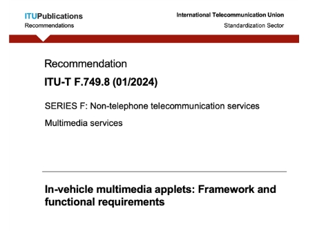 國際電信聯(lián)盟標(biāo)準(zhǔn)部門(ITU-T)正式發(fā)布了由騰訊主導(dǎo)制定的《F.749.8 In-vehicle multimedia applets: Framework and functional requirements》(車載多媒體小程序框架和技術(shù)需求)國際標(biāo)準(zhǔn)。