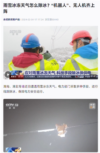 近日多地遭遇雨雪冰凍天氣,各地電力部門采用各種科技手段完成除冰、保障供電工作。