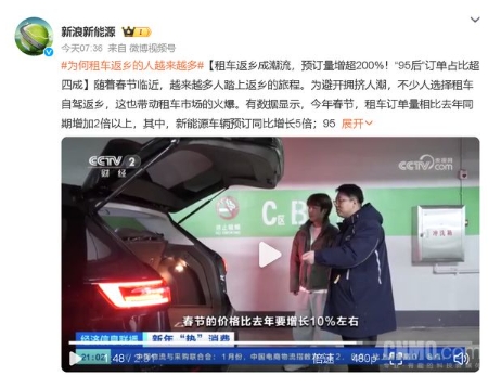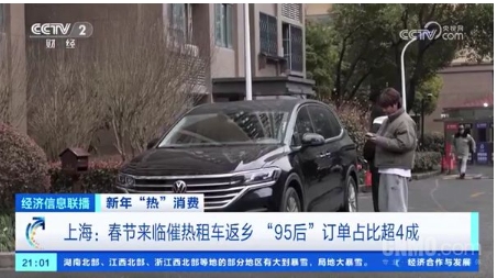 有數據顯示,今年春節,租車訂單量相比去年同期增加2倍以上,其中,新能源車輛預訂同比增長5倍;95后的租車訂單占比超四成,同比增加80%;僅上海地區,租車預訂量已增長近300%。這可能與上海作為國際大都市,人口流動性大,以及年輕人口比例較高有關。