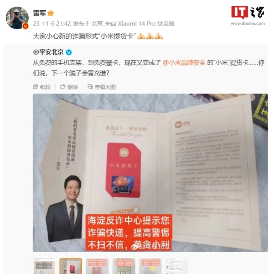 此前還出現(xiàn)過“小米提貨卡”新型詐騙形式,雷軍還提醒用戶不要上當(dāng)。