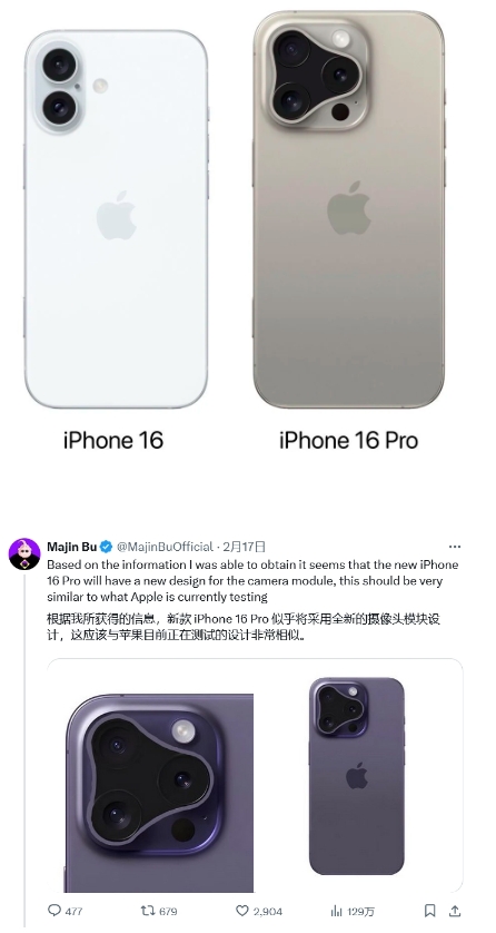 消息源 @MajinBuOfficial 近日發(fā)布推文,分享了 iPhone 16 Pro 手機(jī)的高清渲染圖,展示了機(jī)身背面的全新相機(jī)島設(shè)計(jì),并表示該渲染圖和蘋(píng)果當(dāng)前測(cè)試的原型機(jī)設(shè)計(jì)非常相似。