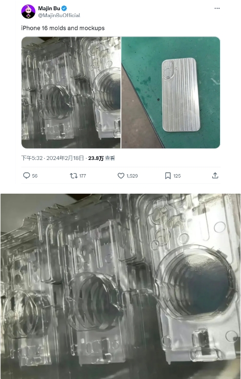 消息源 @MajinBuOfficial 的推文,發(fā)現(xiàn)他還分享了蘋(píng)果 iPhone 16 的壓鑄模具,從而添加了新的證據(jù),表明 iPhone 16 基礎(chǔ)款采用垂直相機(jī)島設(shè)計(jì)。