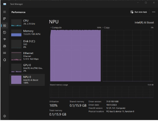 (目前英特爾NPU已經(jīng)支持了Windows11任務(wù)管理器的系統(tǒng)占用顯示)