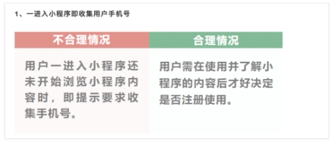 2、不得在小程序內瀏覽時收集用戶手機號。