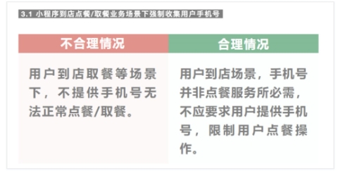 1)小程序到店點餐/取餐業務場景下不得強制收集用戶手機號 。