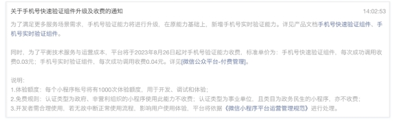 去年8月,還有另一份關于微信小程序的與手機號獲取相關的公告,也已在當下發生了影響。即小程序手機號快速驗證能力,面向開發者(即品牌商家)收費。