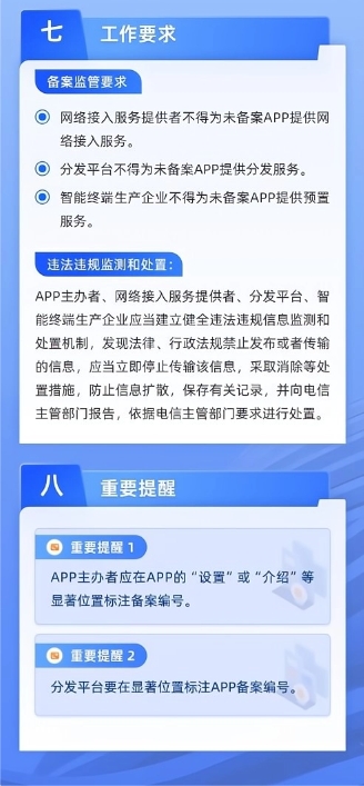 《通知》還稱,網(wǎng)絡(luò)接入服務(wù)提供者、應(yīng)用分發(fā)平臺、智能終端生產(chǎn)企業(yè)不得為未履行備案手續(xù)的 App 提供網(wǎng)絡(luò)接入、分發(fā)、預(yù)置等服務(wù)。