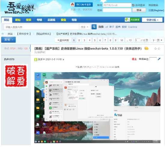 根據吾愛破解社區用戶 @白水 1573 爆料,微信將迎來 Linux 原生版重構,全新 1.0 版本已開啟內測,并放出了測試截圖和安裝包。