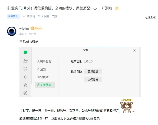 Linux 下的微信體驗一直被用戶所吐槽,雖然可以通過 Wine 來兼容使用 Windows 版微信,但很多人都在期待新的原生 Linux 版本。