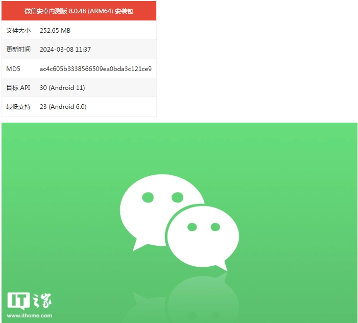 微信安卓平臺迎來了 8.0.48 測試版更新,官方更新日志依舊為“優化了一些已知問題”。