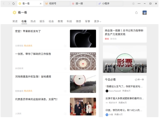 一鍵打開更多內容,包括視頻號、小程序、搜一搜、看一看。