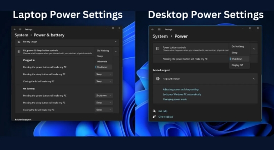 附上 Windows 11 24H2 筆記本和桌面設備設置應用中的電源控制選項截圖如下: