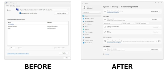 這個新的設置頁面將允許用戶添加或刪除色彩配置文件,以及為所連接的顯示器設置默認色彩配置文件。此外,新版色彩管理設置頁面還提供自動色彩管理選項。