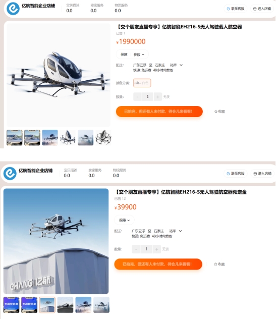 之前,交個朋友直播間在淘寶平臺以 199 萬的價格售出全球首批“空中的士”,引發(fā)網(wǎng)友熱議。