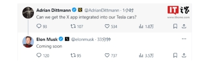 一位特斯拉車主在社交平臺 X 平臺上詢問:“我們能否將 X 集成到特斯拉汽車中?”特斯拉首席執行官埃隆?馬斯克回應稱:“即將發生。”
