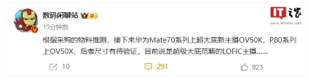 根據(jù)采購(gòu)的物料推測(cè),接下來(lái)華為 Mate 70 系列上超大底新主攝 OV50K,P80(Pura 80)系列上 OV50X,后者尺寸有待驗(yàn)證,目前說(shuō)是超級(jí)大底范疇的 LOFIC 主攝。