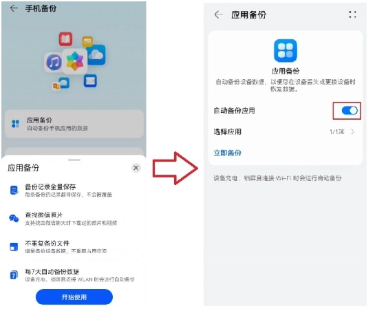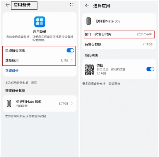 隨著 HarmonyOS 4.2 的到來,華為家庭存儲迎來了應用備份以及微信備份功能,與 HarmonyOS 4.2 及以上版本的手機 / 平板搭配使用可以將微信數據備份到 NAS 上,必要時隨時可以恢復微信數據。