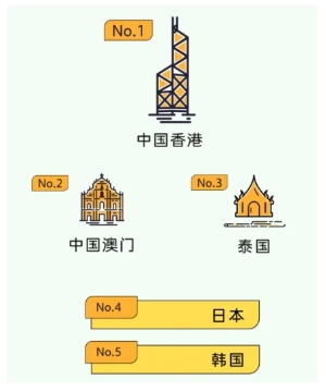 境外目的地消費(fèi)熱度 TOP5:中國香港、中國澳門、泰國、日本、韓國。