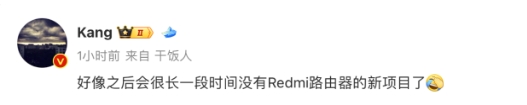 在博主 @Kang 的評論區里,認證為小米中國區智能硬件市場負責人 @Selen7 回復網友評論稱,以后沒 Redmi 品牌的路由器了。