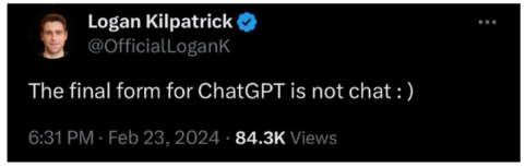 早就2月份,OpenAI前開發(fā)者關(guān)系負責人就提及,ChatGPT的終極形態(tài)不是聊天,看起來和現(xiàn)在的信息對應(yīng)上了