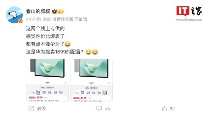 博主 @看山的叔叔 表示,華為 MatePad 11.5S 靈動款平板的兩個配置(8GB+128GB、8GB+256GB)專供線上渠道,感覺“性價比爆表,都有點不像華為了”。