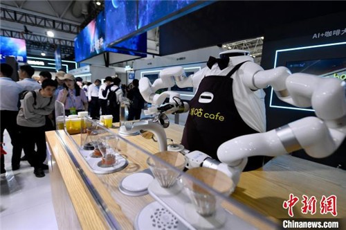 福州5月25日電 (記者 龍敏)先取豆磨豆,再燜蒸沖泡,遞給你一杯咖啡,最后還能清洗杯子……走進正在福州舉辦的第七屆數字中國建設峰會現場展示區,雙臂六軸機器人“AI咖大師”在展位現場服務著八方來客。展位工作人員夏怡然向中新網記者介紹,機器咖啡師的沖調“手法”對標的是世界咖啡大賽冠軍。