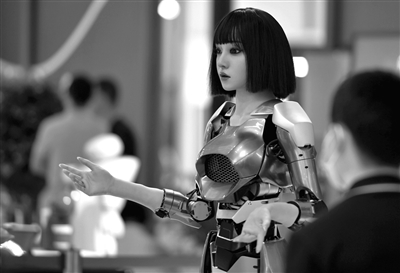 在第七屆數(shù)字中國建設(shè)峰會現(xiàn)場體驗(yàn)區(qū),超仿生人形機(jī)器人“小柒”在向觀眾致意。新華社記者 魏培全 攝