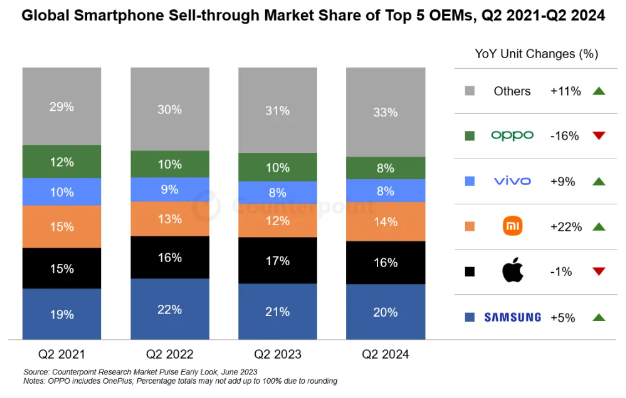 Counterpoint:2024 年 Q2 全球智能手機(jī)銷量同比增長(zhǎng) 6% 09:13:26
