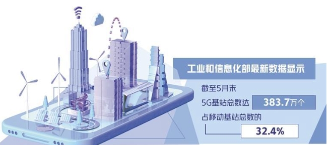 工業(yè)和信息化部最新公布的數(shù)據(jù)顯示,截至5月末,5G基站總數(shù)達(dá)383.7萬(wàn)個(gè),占移動(dòng)基站總數(shù)的32.4%;5G移動(dòng)電話用戶達(dá)9.05億戶,占移動(dòng)電話用戶的51.3%。