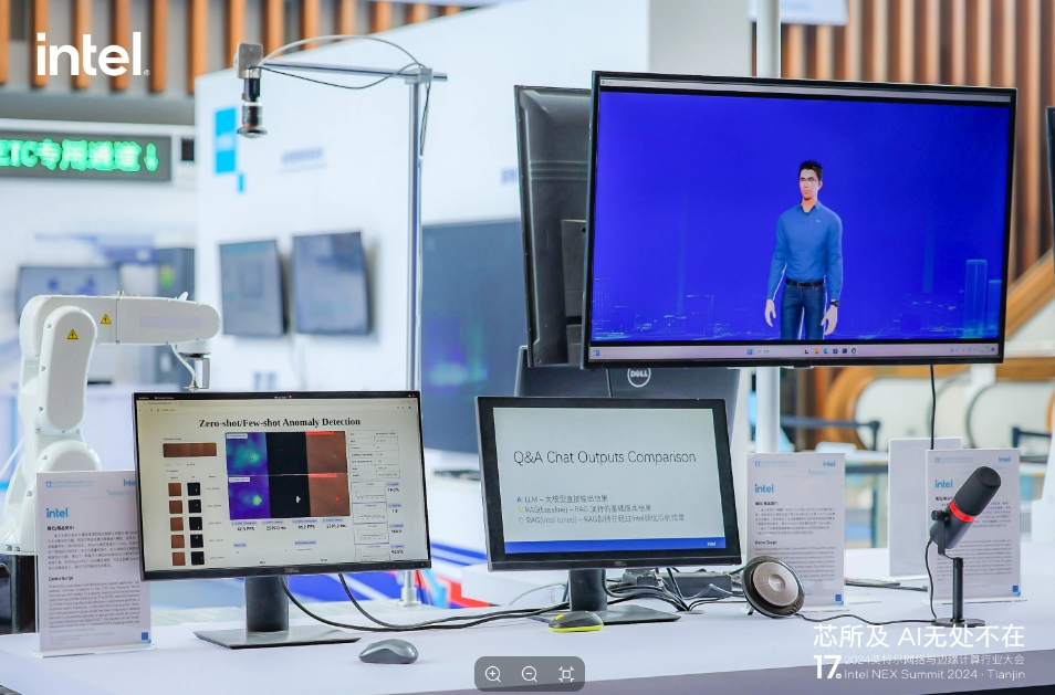 此次英特爾最新打造的3D虛擬數智人“小英”亦展出。展臺工作人員稱,“小英”同樣基于酷睿處理器、ARC770顯卡打造,完全部署于邊緣端,還在本地集成了大語言模型和RAG技術。據悉,其可以勝任營業廳客服、商場導購、博物館講解員等角色。