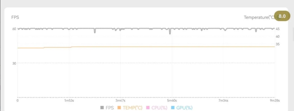 在實(shí)際游戲中,我們對(duì)市面上受眾用戶(hù)較多的《王者榮耀》進(jìn)行測(cè)試,我們將畫(huà)質(zhì)調(diào)至最高,兩把游戲下來(lái),麥芒30基本穩(wěn)定在60幀左右,游戲中的幀率曲線幾乎要成為一條直線。所以這款產(chǎn)品應(yīng)付日常使用和輕度游戲基本是沒(méi)有什么問(wèn)題的。