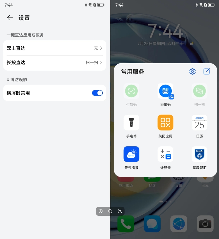 差點(diǎn)忘了,麥芒30還有一個(gè)特別有意思的設(shè)計(jì),那就是在機(jī)身中框的左上角有一顆獨(dú)立物理按鍵,官方將其稱(chēng)為X鍵。單擊它時(shí)就能直接呼出常用APP九宮格頁(yè)面,你可以提前將自己常用的APP「放入」其中,例如像什么付款碼、手電筒、指定聯(lián)系人等等等等。