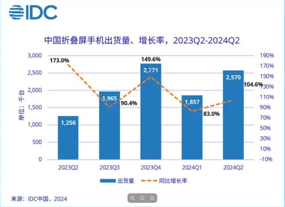 2024 年第二季度,中國(guó)折疊屏手機(jī)市場(chǎng)持續(xù)升溫,出貨量達(dá)到257萬(wàn)臺(tái),同比實(shí)現(xiàn)三位數(shù)增長(zhǎng)。