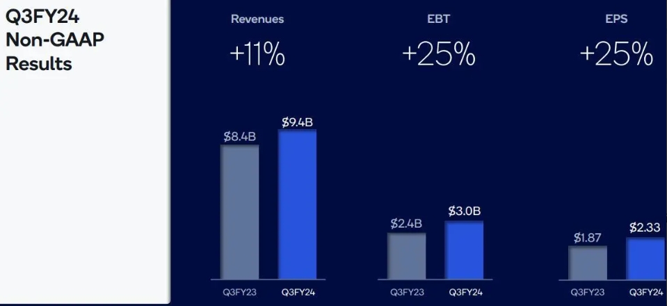 營業(yè)收入:二季度非GAAP口徑下調(diào)整后營收93.91億美元,同比增長11%,分析師預(yù)期92.1億美元,一季度同比增長1%。