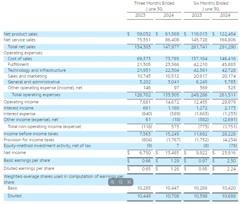 亞馬遜本季度業績概覽。來源:亞馬遜財報