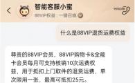 淘寶將為 88VIP 用戶推出無限次的退貨包運費權益,每單最高可抵免 25 元,目前正在灰測中。目前該權益僅部分用戶可以使用,近兩天