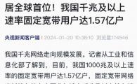 據央視新聞報道,我國的千兆網絡正在迅速發展。根據工業和信息化部的消息,目前我國有 1 57 億戶使用 1000 兆及以上速率的固定寬帶