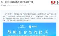國軒高科全資子公司合肥國軒高科動力能源有限公司(以下簡稱合肥國軒)與奇瑞汽車股份有限公司(以下簡稱奇瑞汽車)簽署戰略合作協議。雙方