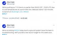 藍色起源公司(Blue Origin)宣布原定于周一進行的發射活動,由于發射場的低溫、地面系統故障等因素延遲后取消,將在本周再次擇機進行發