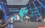 靈鍶智能四足機器狗在T臺展示。 主辦方供圖 硬核科技產(chǎn)品下場變身T臺新秀,企業(yè)高管上場發(fā)布重磅新品。7月22日下午,灣區(qū)T臺