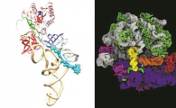 在左圖中,超級計算機模擬揭示了抗生素依維寧(淺藍色)如何與細菌核糖體中的 tRNA 分子(金色)相互作用。右圖顯示,在沒有抗生素的情況