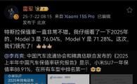 7月22日,小米副總裁李肖爽微博發文,援引中國汽車流通協會和精真估聯合發布的《2025上半年中國汽車保值率研究報告》數據,宣布小米SU7