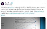 媒體今年 3 月報道,推特即將為 Twitter Blue 用戶推出個性化服務,允許隱藏藍 V 徽章
