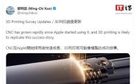 跟蹤蘋果產業鏈多年的分析師郭明錤今日發布報告指出,CNC(數控機床)在蘋果開始采用后快速成長,3D 打印有可能會復制此成功故事。關鍵供應商為激光零部件的 IPG Photonics,以及 3D 打印機供應