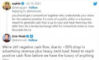 當地時間上周六,埃隆·馬斯克表示,受廣告收入下降近 50% 和沉重的債務負擔影響,推特現金流仍然為負,未達到他 3 月份做出的推特