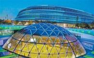 國家速滑館西南側的人形機器人賽訓基地熊貓眼燈光明亮,5V5足球比賽在此舉行。 吳 凡攝(人民視覺) 5V5足球比賽現場,人形
